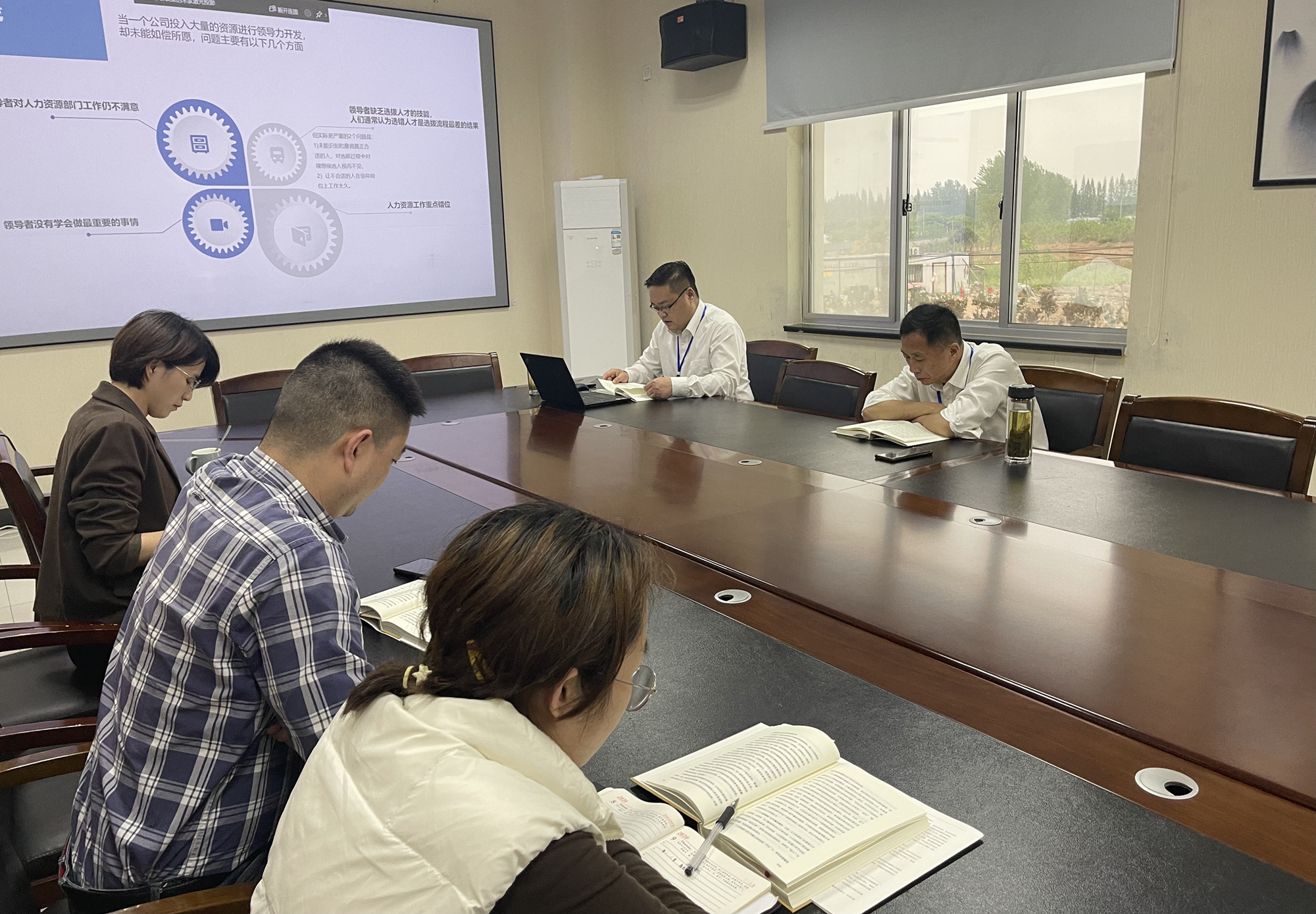 本次活動選擇的書目為《領導梯隊》,活動按管理模塊劃分五個學習小組,各模塊分管副總經理擔任小組組長,牽頭落實學習與分享工作,計劃兩個月內完成全書的分享活動,并完成個人讀書心得與改善計劃。蔣總首先帶領第一小組的學員回顧了一、二章的重點內容,以PPT的形式提煉兩個章節的指導精神,過程中穿插案例分析,并結合個人多年的管理經驗為大家做分享。蔣總的PPT內容精煉,生動精彩,加上深入淺出的講解,使大家對管理梯隊的建設工作有了更深層次的理解,活動現場氣氛非常熱烈。