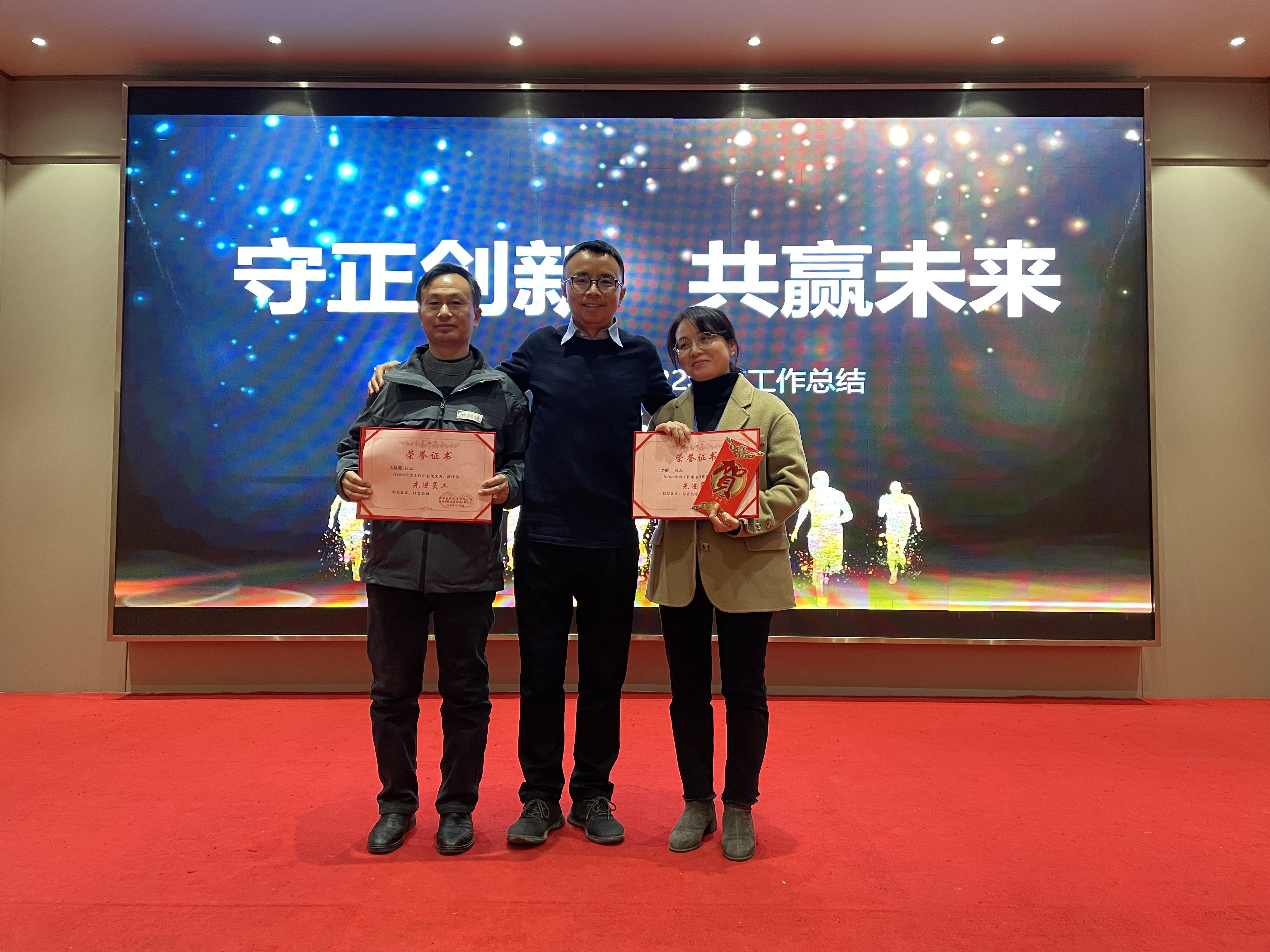 圖:鄭總進行總結(jié)匯報 每份佳績的取得均與每位員工的努力奮斗息息相關(guān)。會上,鄒經(jīng)理宣讀了對2022年度先進部門、先進員工和聯(lián)合水務(wù)年度優(yōu)秀宣傳工作人員表彰的決定,劉總、陳總、楊總和黃總為獲獎?wù)哳C獎。隨后,先進員工代表李麗發(fā)表了獲獎感言。