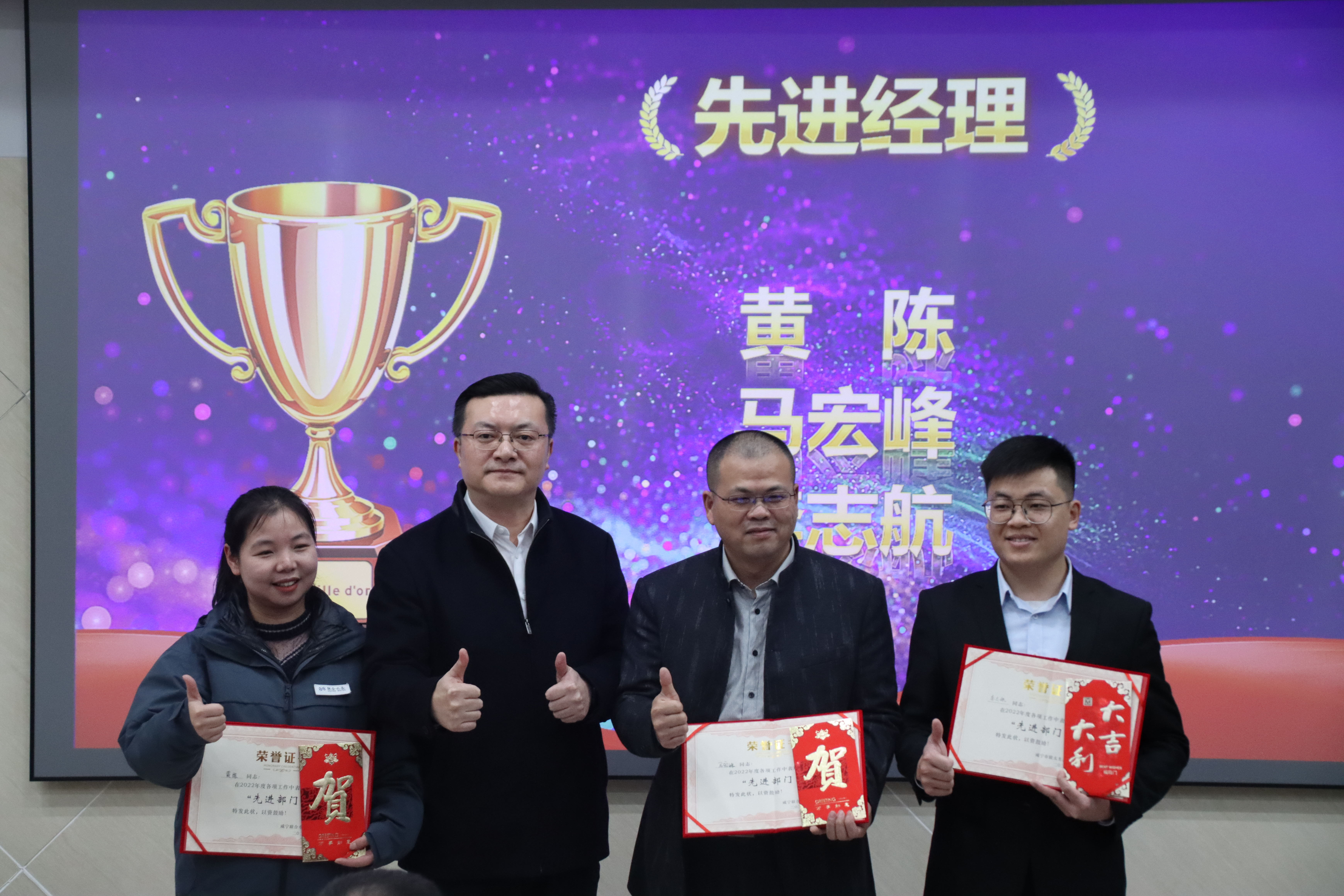 圖:陶總進行總結(jié)匯報 隨后,咸寧聯(lián)合市政工程有限公司總經(jīng)理王冬青進行了2022年度工作總結(jié),王總對2022年度堅守崗位、不畏嚴(yán)寒酷暑圓滿完成2022年43km老舊管網(wǎng)改造工程計劃的全體員工表示深深感謝,并表示在新的一年將繼續(xù)加快推進2023年度市城區(qū)老舊供水管網(wǎng)改造工作,確保2023年6月底前保質(zhì)保量地完成改造任務(wù),向咸寧市民交上一份滿意答卷;咸寧思源水務(wù)有限公司常務(wù)副總經(jīng)理施政云在橫溝水廠擴建項目上取得的成就、農(nóng)村供水問題上遇到的難點、痛點進行了全面總結(jié)并提出了解決方案;咸寧聯(lián)太生態(tài)環(huán)境科技有限公司總經(jīng)理陳博表示,2022年是豐功碩果的一年,在匯報中用數(shù)據(jù)展示實力,持信心展望未來;集團建設(shè)管理中心項目經(jīng)理沈文奇匯報了咸寧思源水廠改擴建工程項目工作,總結(jié)了運營中遇到的難題以及針對問題提出的改進措施,并表示新的一年將在集團領(lǐng)導(dǎo)的正確指示下奮楫爭先、勇往直前。 歷盡天華成此景,人間萬事出艱辛。總有那么一群人,他們時刻心系公司的憂患,與公司同風(fēng)雨、共進退。會上,聯(lián)合水務(wù)常務(wù)副總裁助理黃露宣布了2022年度集團宣傳通訊獲獎名單,咸寧聯(lián)合水務(wù)總經(jīng)理毛雄輝宣布了2022年度先進部門、先進員工等受表彰人員,參與領(lǐng)導(dǎo)分別為獲獎人員進行頒獎,先進經(jīng)理馬宏峰、先進員工柯偉作為代表發(fā)表了獲獎感言。