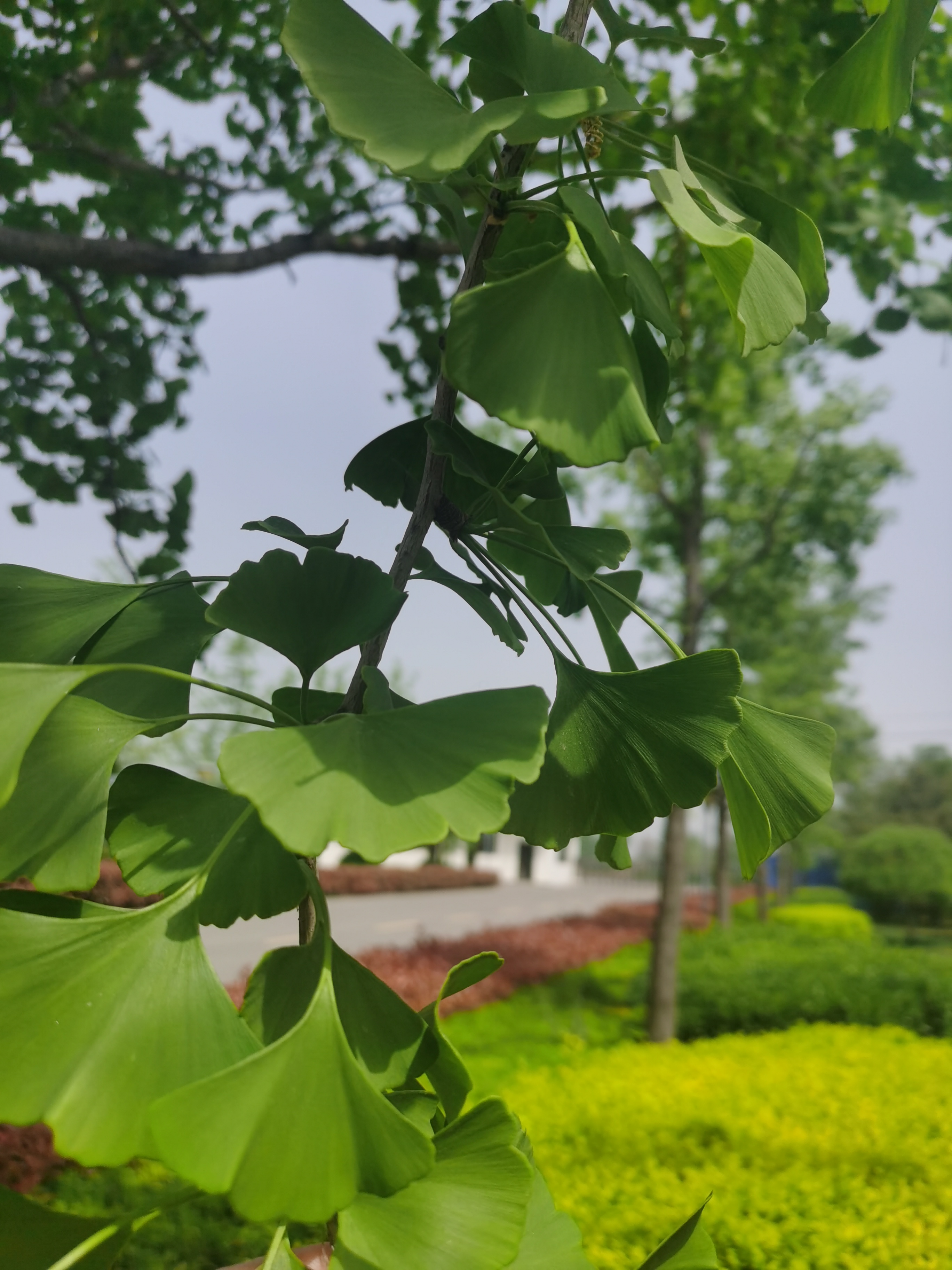春末夏初,天氣漸熱,百花園里爭奇斗艷的櫻花、桃花、梨花、海棠慢慢謝了幕,晉華園里路旁的銀杏樹已然在不經(jīng)意間長滿了深綠色的扇形葉片如同一把張開的綠絨大傘,碧綠的銀杏樹與銀灰色的馬路交相輝映,形成獨(dú)特的風(fēng)景。