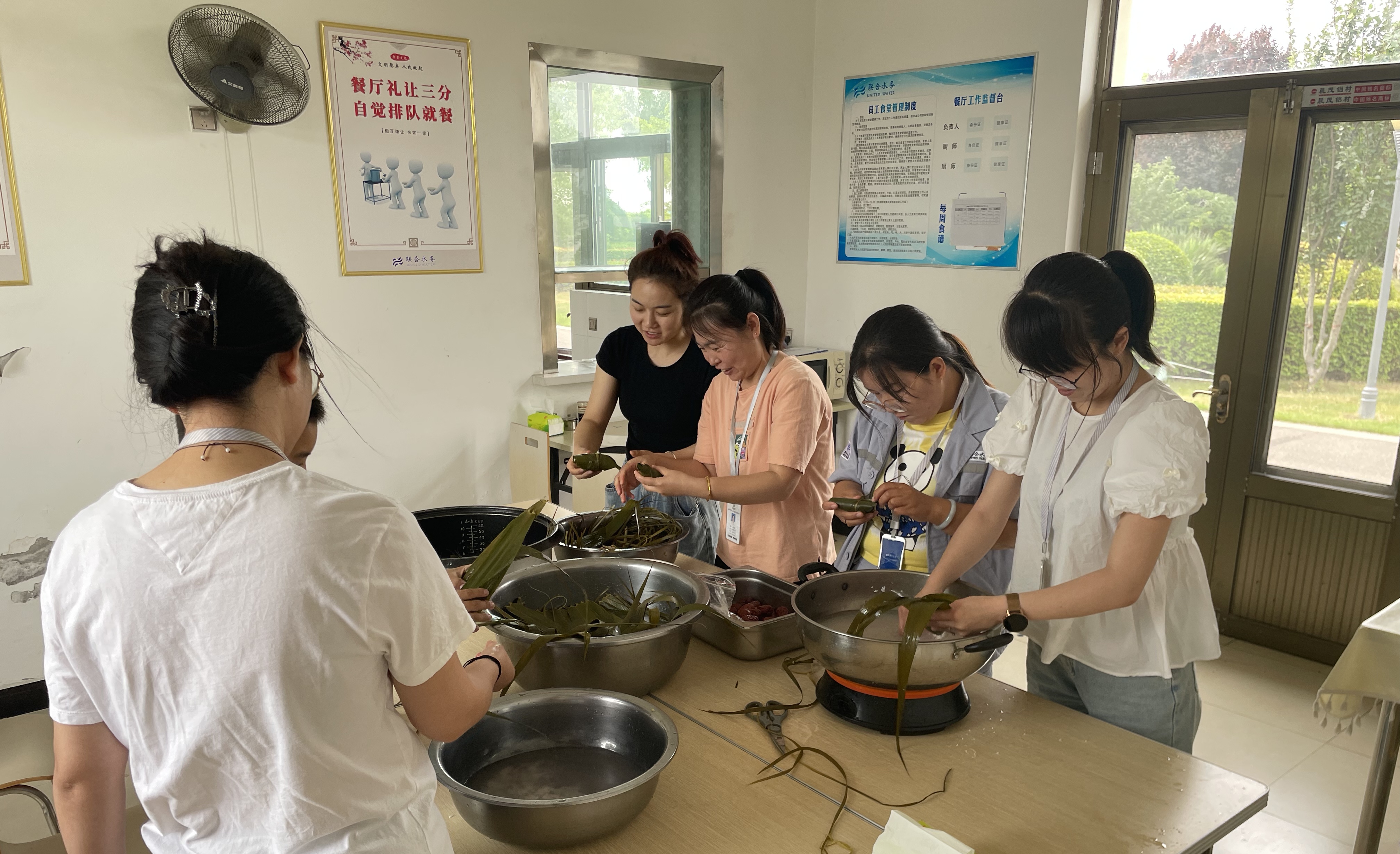 包粽子 6月6日上午,各公司職員齊聚餐廳,大顯身手。大家一起熟練地將粽葉折成錐形、放糯米和紅棗,最后折疊粽葉、用棉線捆扎,不一會兒一個個棱角分明的粽子就成了。上鍋蒸煮后,端出熱氣騰騰的甜粽,嘗上一口,大家甜在嘴里,樂在心里。活動現場還設立了端午問答環節,比如端午節是為了紀念我國哪位愛國人士?中國的傳統節日有哪些?端午節都有哪些習俗等等。包粽子活動在大家的歡聲笑語中圓滿完成,與會職工溫馨合影,留下了這次活動的快樂瞬間。