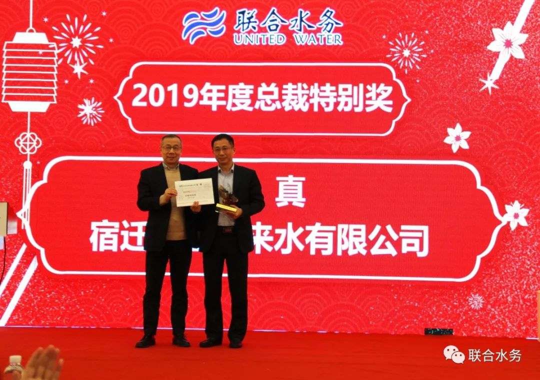 1月20日,聯合水務集團2020年年會在咸寧碧桂園鳳凰溫泉國際酒店召開,上海集團總部、各區域項目公司的帶頭人共計48名高層管理人員參加會議,總結2019、展望2020年,共商集團發展大計。會議由集團人力資源行政總經理楊麗霞女士主持。各項目公司、集團各運營模塊負責人分別作了2019年工作總結和新一年工作計劃匯報,集團高級副總裁劉猛先生、陳樵先生、副總裁羅斌先生根據匯報對各自負責的華中區、華南區、北方區的重點工作和挑戰做了分析與計劃,向著更高的目標,不斷奮進!2019年,宿遷銀控自來水有限公司為集團營收、人才輸出、新項目建設等做出了突出貢獻,總經理曾真先生摘得“2019年聯合水務集團總裁特別獎”桂冠。集團董事長兼總裁俞偉景先生為曾總頒獎。榮譽是激勵,更是鞭策。曾真總經理發表獲獎感言,感謝集團領導對宿遷公司的關懷、感謝宿遷公司所有同仁的共同努力、感謝各兄弟公司的鼎力支持,并表示將一如既往,緊跟集團發展步伐,當好排頭兵。