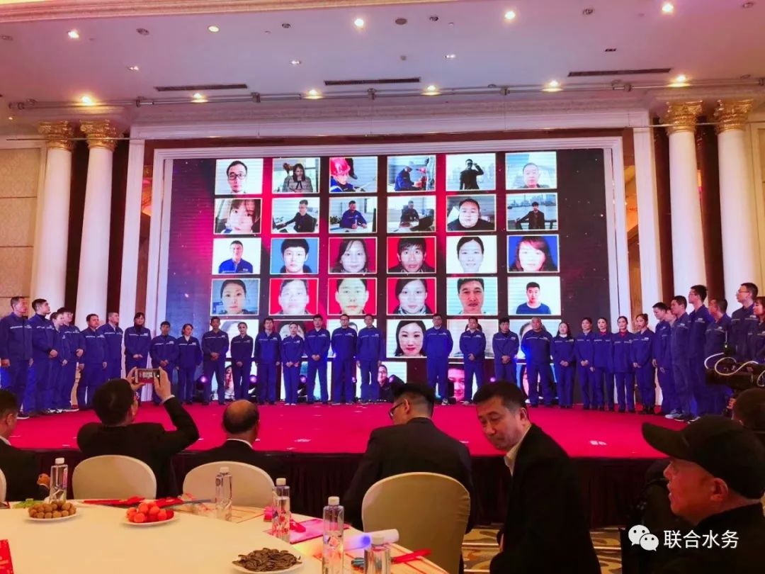 俞總的致辭情真意切,振奮人心,另一個提振士氣的時刻又將到來。2019年,全集團共產生了37位先進員工,他們在各自的崗位上做出了突出的成績,為彰顯榜樣的力量、鼓舞干勁,聯歡會對先進員工們進行了現場表彰。他們邁著堅定的步伐、帶著自信的微笑,走上臺上,揮手示意,特邀嘉賓長江國控金融控股有限公司董事局主席蘇云先生等、集團董事長兼總裁俞偉景先生等總部各位領導、各項目公司總經理上臺為他們綬紅綢帶、合影留念,并一起給聯合水務全體家人拜年,送出了新春祝福。