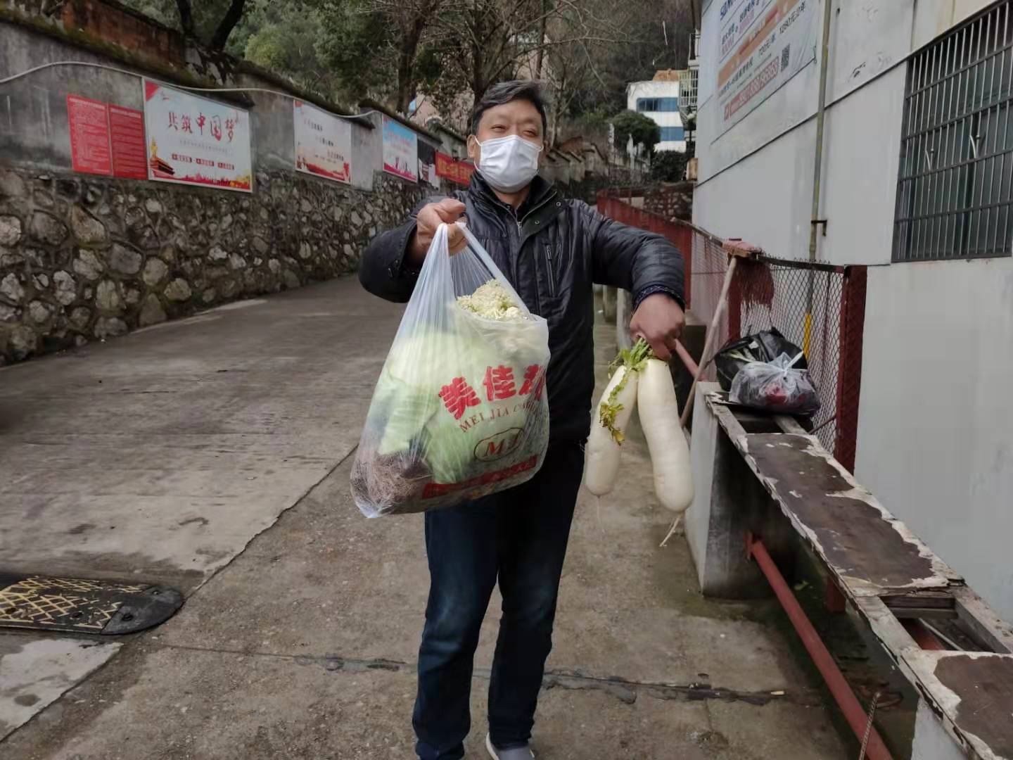 圖3:居民送來的愛心蔬菜 共戰(zhàn)疫情,共守平安。志愿者樊帆和祝恒哲是來自咸寧聯(lián)合水務(wù)公司兩名九零后小伙,值守在清馨苑小區(qū)門口,從早晨七點(diǎn)到晚上八點(diǎn),兩位小伙一刻不停,嚴(yán)格詢問每一位出入人員,登記個(gè)人身份信息,詢問每一輛出入車輛,登記車輛信息及駕駛員個(gè)人身份信息,進(jìn)行體溫測量……其中,志愿者樊帆是該小區(qū)居民,從值守之日起,他便開啟了“鐵面無私”的工作模式,無論是小區(qū)內(nèi)關(guān)系較好的朋友或是鄰居,凡是不符合外出規(guī)定的,統(tǒng)統(tǒng)在他那吃了閉門羹.