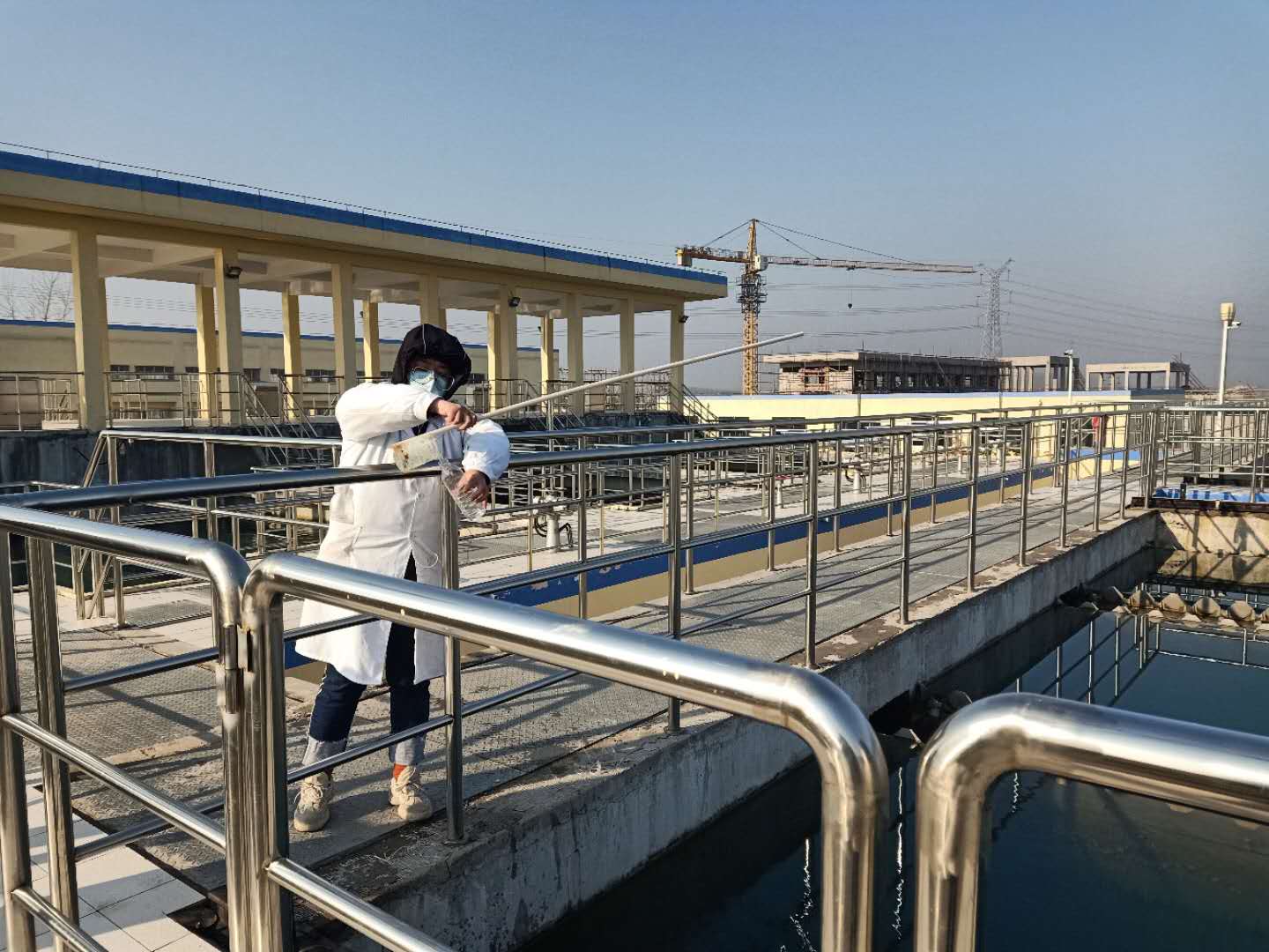 圖2:水質化驗員取水樣進行加密檢測