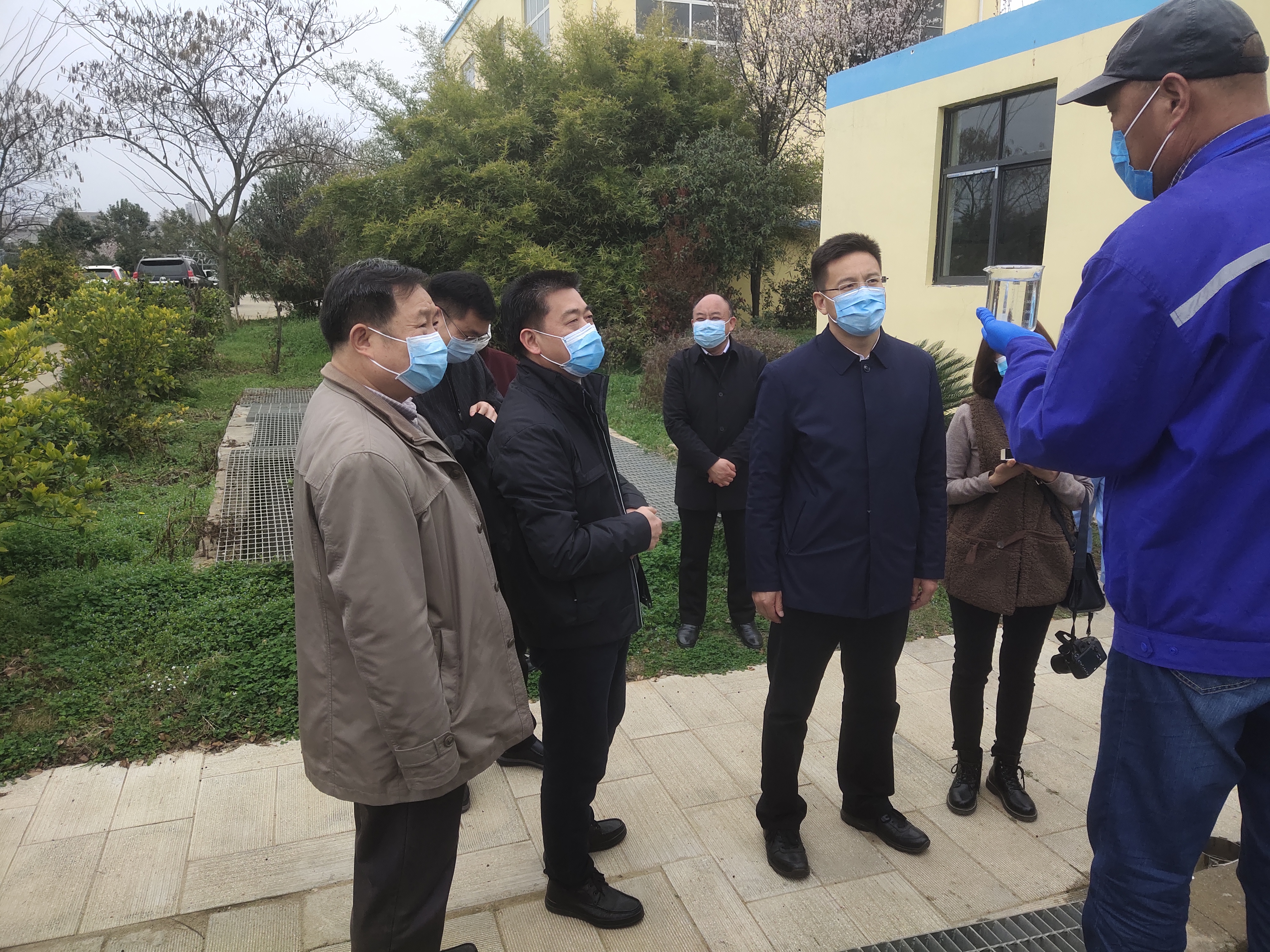 2020年3月8日,隨州市市長克克、市政府秘書長劉光海在市住建局局長熊忠海、副局長王倫建,市生態(tài)環(huán)境局局長陳松,市排水管理處主任嚴賢江等相關(guān)部門領(lǐng)導(dǎo)陪同下深入疫情防控一線,對隨州市污水處理廠的疫情防控及生產(chǎn)運行情況進行現(xiàn)場督導(dǎo)檢查。隨州聯(lián)合玉龍水務(wù)有限公司副總經(jīng)理姚行兵等陪同檢查。 克克市長一行先后檢查了污水廠中控室、在線監(jiān)測室、出水總排口等,詳細詢問了解企業(yè)制定的疫情防控措施和方案。并對聯(lián)合水務(wù)在全國的業(yè)務(wù)分布情況、污水廠的員工在崗情況、生產(chǎn)運行情況、每天處理的水量水質(zhì)等進行了詳細的了解。