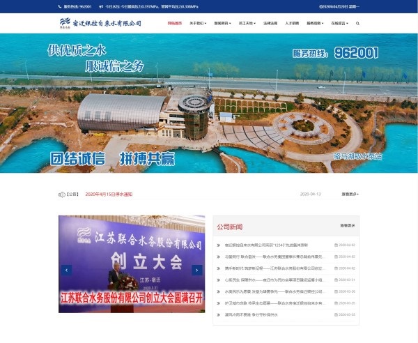 宿遷銀控自來水有限公司網站此次重新改版,在前一版面的基礎上,應用了先進的網站開發程序和設計理念,首頁內容生動、豐富,給人以更清新的視覺感受。內容包括公司簡介、新聞資訊、員工天地、法律法規、人才招聘、服務指南、在線留言、水質公示、公示公告等版塊,模塊布局、頁面設計、網站內容等方面得到了更加科學合理地調整、優化。