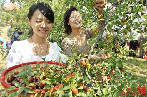 棗林園區(qū) 在這里,我像是看見(jiàn)自己在秦末的農(nóng)民起義中,驍勇善戰(zhàn),北攻趙池,南征九江。我好像來(lái)過(guò),又好似遺棄,在那棵斑駁的樹(shù)影下,跳動(dòng)的是我留下的馬蹄印。對(duì)的,盡管我叱咤戰(zhàn)場(chǎng),風(fēng)云所極,最后我又回到了這里,娶妻生子,就坐在那棵老樹(shù)下,對(duì)著兒孫們吹噓自己的英勇事跡。 在列國(guó)紛爭(zhēng)的年代,它們始終以一種陌生的姿態(tài),看著江山的起起伏伏。 這些老棗樹(shù)生生不息地滋養(yǎng)著稷山的子民,在老樹(shù)的周?chē)粩嘤行律男棙?shù),生命力頑強(qiáng),一代撫養(yǎng)著一代,經(jīng)久不衰。當(dāng)?shù)厝藶橹×藗(gè)綽號(hào)——“祖宗三代”,真的是子孫滿(mǎn)堂啊,一棵樹(shù)都活得這么有尊嚴(yán)。它們其樂(lè)融融地在這片土地上生根發(fā)芽,搖曳生姿,祖祖輩輩地在這里誕生著古老又年輕的靈魂。 沉溺在無(wú)比輕柔恬靜的擁抱里,向密密高高的樹(shù)頂望上去,此時(shí)的陽(yáng)光就像閃爍的黃玻璃,訴說(shuō)著生命的高歌。崎嶇不平的小路和路旁茂密的灌木叢,隔斷了外面的村鎮(zhèn),也隔斷了時(shí)間的伸延。樹(shù)葉的沙沙聲像似一種秘密的呼喚,閉上眼睛,盤(pán)起腿坐在樹(shù)下,想象自己幻化成勇士的樣子。 枝枝椏椏,滄桑變幻,兩人才能勉強(qiáng)合抱過(guò)來(lái),更讓人驚奇的是樹(shù)上依舊掛滿(mǎn)了果實(shí),大概它的根已經(jīng)伸到了汾河的源頭。 皇上愛(ài)吃的板棗 “江南橘紅日,塞北棗紅天”,江南橘子紅的日子,北方的棗便渲染了整個(gè)天空。棗子成熟之際,就是皇宮內(nèi)歌舞升平的時(shí)候。 據(jù)說(shuō)有一天,皇帝微服出巡,行至稷山,看到當(dāng)?shù)氐墓倜衲信季奂舆叄瑢⒓t棗擲至河中,嬉戲喧鬧,踏歌舞蹈。一幫文人雅客即興飲酒賦詩(shī),得知是當(dāng)?shù)氐闹卮蠊?jié)日后皇帝詩(shī)興大發(fā),作詩(shī)三首,與民同樂(lè),并一起品嘗板棗,大贊甜脆生香,飽腹而歸。 回宮后,皇帝和愛(ài)妃們共進(jìn)午餐,面對(duì)桌上的十幾道菜式,真的是吃膩了,滿(mǎn)腦子都是在稷山吃到的香甜脆口的板棗。食欲不振之下,皇帝按耐不住,趁著夜黑風(fēng)高爬遍了皇宮內(nèi)的棗樹(shù),卻沒(méi)有找到和板棗一樣味道的。遂連日跋涉于稷山長(zhǎng)安令家中索求當(dāng)?shù)匕鍡棧⒁贿B住下大半個(gè)月以飽口腹之欲,并且常食不厭。 后來(lái)當(dāng)?shù)毓賳T得知皇上愛(ài)吃板棗,便每年進(jìn)貢,從此稷山板棗成為“御棗”,專(zhuān)供皇家享用。 尋找匠人取真經(jīng) 烏雞在唱著歌,水鴨在說(shuō)情話,笨拙地拖著肥碩的身子漫步。 給自家二十多畝的棗園施完肥后,天已向晚,58歲的王大伯拖著鋤頭走到田埂邊累的一句話都不想說(shuō)。比他大兩歲的老伴緊跟在身后,兩個(gè)人身上滿(mǎn)是土,種了一輩子的棗樹(shù),已經(jīng)習(xí)慣這樣的狀態(tài)了。 看看這片老祖先留下來(lái)的棗林被老兩口打理得依然有序,不禁佩服,我們走過(guò)去打招呼,大伯憨笑,大媽靦腆:“從小就在這棗林里長(zhǎng)大,記得小的時(shí)候就天天爬樹(shù),不知磨壞了多少條褲子,棗子熟得時(shí)候更是這樣,每天都在這里摘棗打棗吃棗,可好吃呢……”說(shuō)起童年,大媽疲憊的臉上綻出了笑容,看著頭頂上的棗樹(shù)平靜地說(shuō):“老祖宗留下來(lái)的東西,要好好種。” 在王大伯家討了些棗子,未到嘴邊就已聞到濃濃的醇香,肥碩的果實(shí)很有彈性,意猶未盡。關(guān)鍵是這種板棗可以拉絲,掰開(kāi)后能拉出2-3厘米長(zhǎng)的金黃色糖絲。