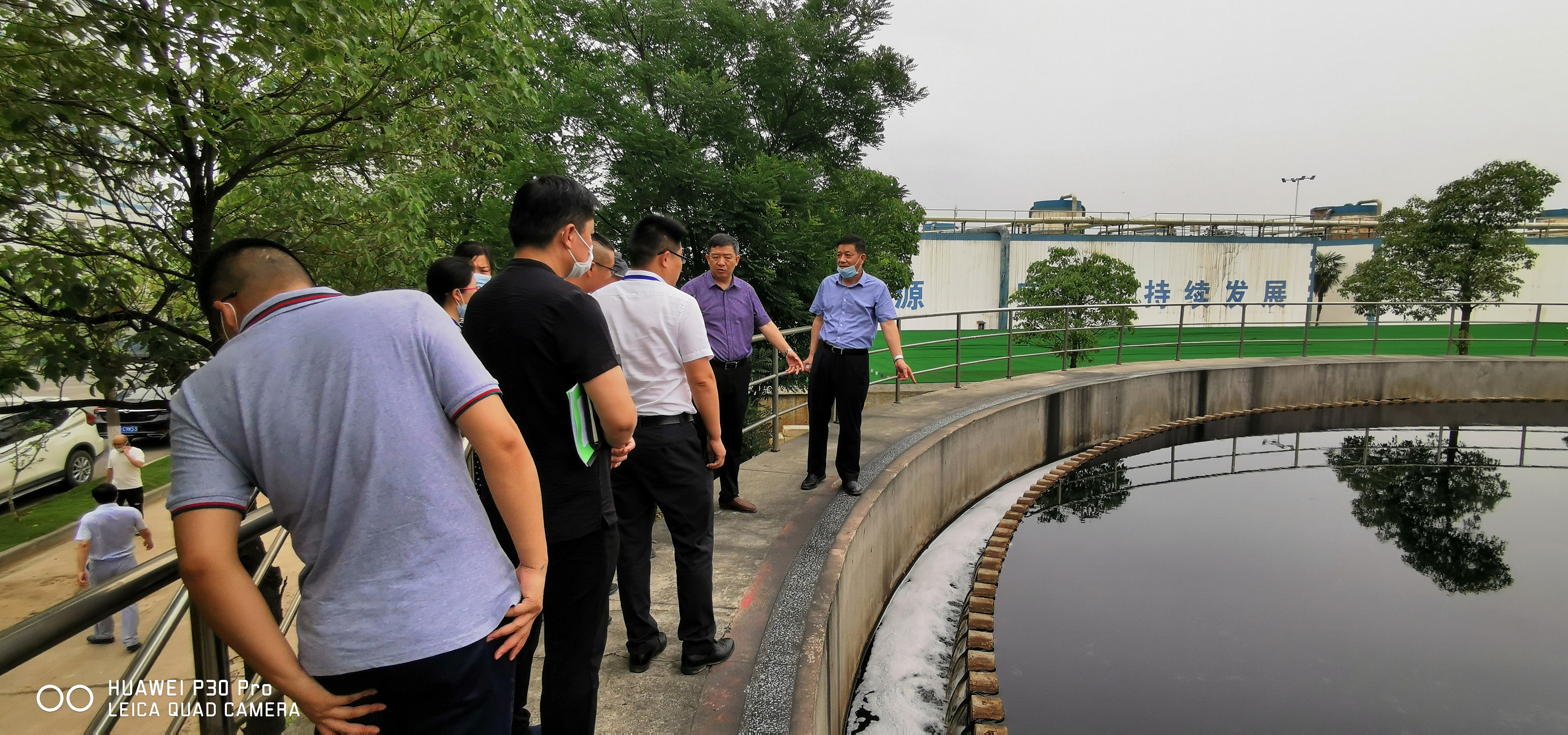 周書記一行查看了荊州申聯公司工業污水處理廠集水池、初沉池等構筑物的大氣治理情況,詢問了公司近期出水排放情況。公司生產副總經理傅云為周書記一行詳細介紹了污水及大氣處理生產運行情況,工業污水處理廠采用的是A/O+芬頓氧化深度處理工藝,目前工業污水處理廠圓網機、調節池、濃縮池及生化系統的大氣治理工作已完成且設備運行穩定,后期將有序推進初沉池的大氣治理工作。