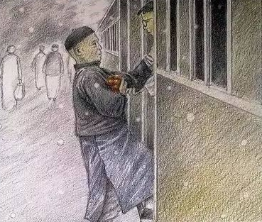 圖2:父親車(chē)站送橘子 我說(shuō)道,“爸爸,你走吧。”他往車(chē)外看了看,說(shuō),“我買(mǎi)幾個(gè)橘子去。你就在此地,不要走動(dòng)。”我看那邊月臺(tái)的柵欄外有幾個(gè)賣(mài)東西的等著顧客。走到那邊月臺(tái),須穿過(guò)鐵道,須跳下去又爬上去……這時(shí)我看見(jiàn)他的背影,我的淚很快地流下來(lái)了。