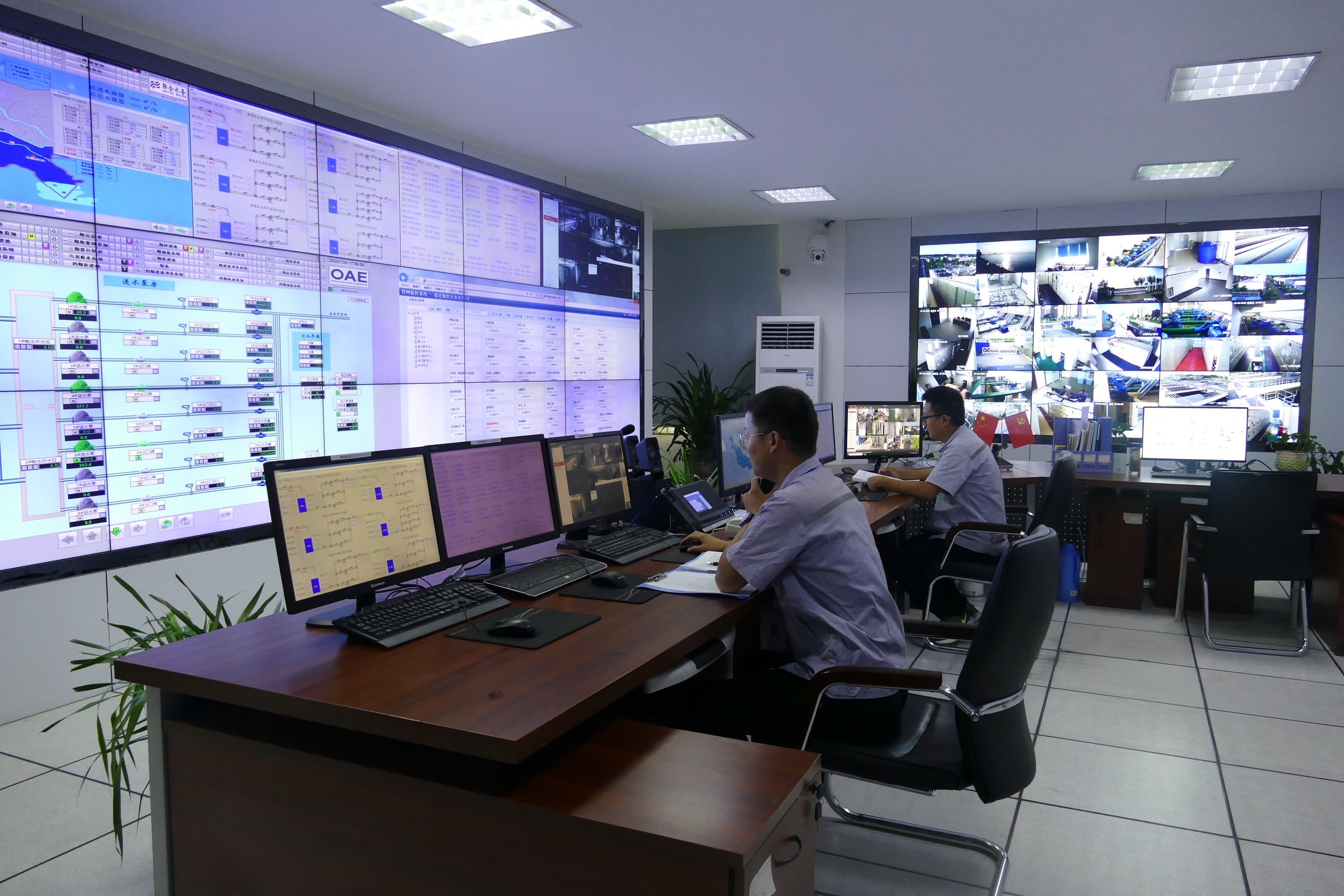 圖4:水檢人員做水質(zhì)化驗(yàn) 調(diào)度中心把好“供水科學(xué)調(diào)度”關(guān) 隨著供水規(guī)模的不斷擴(kuò)大,公司斥資一百多萬(wàn)元對(duì)調(diào)度中心進(jìn)行了整裝重修,更換了液晶數(shù)字大屏,直觀、實(shí)時(shí)、全方位顯示各種信息,包括工藝控制、供水管網(wǎng)信息、二次供水信息、視頻監(jiān)控等。調(diào)度中心實(shí)行24小時(shí)人員值守,充分發(fā)揮供水“大腦中樞”的重要作用。供水調(diào)度人員,每天都要時(shí)刻關(guān)注著電腦和電子大屏上的數(shù)據(jù)參數(shù),一旦發(fā)現(xiàn)異常,立即匯報(bào)。看屏幕久了,眼睛生澀,疼痛難忍,但是,因?yàn)樾闹杏胸?zé)任,他們心無(wú)旁騖,堅(jiān)守崗位,確保每一滴水的科學(xué)優(yōu)化分配。