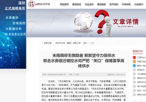 炎炎高溫季,滴滴清泉水,生命之源,不可或缺。確保一年一度的夏季高峰供水安全是供水企業一項艱巨的任務。今年夏季高溫到來前,宿遷銀控自來水有限公司未雨綢繆,制定多項措施,確保圓滿完成今夏高峰供水任務。與此同時,高峰供水宣傳工作也同步展開,制定了詳細的宣傳方案,擔負起公司夏季高峰保供水上情下達、下情上知、內外交流的重要職能。通過高峰供水宣傳引導,公司內部在規范管理、提高效益和效率、優質服務等多方面下功夫,扎實推進,激發員工正能量;對外界,準確傳達公司供水的有力舉措、打贏高峰供水保衛戰的決心,展示我們的優質供水服務,傳遞公司節水、護水、愛水的理念,樹立公司良好的社會形象,贏得了社會各界的廣泛認可。 打好報社傳統媒體與新媒體組合拳。市級主流媒體《宿遷日報》是每年都要宣傳的傳統媒體平臺,隨著新媒體開發,“速新聞”、“宿遷網”、“宿遷手機臺”、微信公眾號等一些與時俱進的新媒體方式也層出不窮。今年公司的宣傳以《宿遷日報》、《宿遷日報宿豫版》傳統媒體為依托,同時采用了“速新聞”、公司微信公眾號推送系列報道、員工發微信朋友圈等方式,更利于提升宣傳效果。