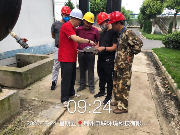 圖5:集團(tuán)建設(shè)管理部石總親臨荊州項(xiàng)目公司現(xiàn)場指導(dǎo)換熱器安裝工作 水是生命之源、萬物之本、城市之基。荊州申聯(lián)人融情于水,用滿頭大汗、汗流洽衣見證了暑旱酷熱下對本職工作“不忘初心、牢記使命”的堅(jiān)守。他們眾志成城、共克酷暑,用實(shí)際行動(dòng)踐行“為用戶提供優(yōu)質(zhì)之水,為保護(hù)社會(huì)環(huán)境提供潔凈的水處理服務(wù)”的企業(yè)使命,全身投入高溫治污保生產(chǎn)的戰(zhàn)斗之中,以治污聚人心,以治污促業(yè)務(wù),以治污強(qiáng)發(fā)展,以出水達(dá)標(biāo)排放為城市賦能、為百姓謀福。 |