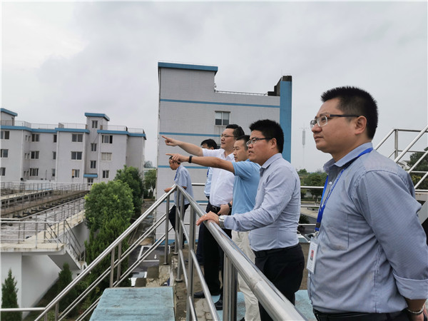 圖2:劉總一行視察生活污水厭氧池 最后,劉總一行在辦公大樓四樓會(huì)議室召開(kāi)座談會(huì)。會(huì)上,荊州公司蔡猛總匯報(bào)了目前荊州申聯(lián)公司進(jìn)水及收入情況,并對(duì)提高收入水平制定了具體方案。劉總對(duì)荊州申聯(lián)公司上半年的成績(jī)表示肯定,并提出了如下四點(diǎn)工作要求:一、保質(zhì)保量按時(shí)完成開(kāi)發(fā)區(qū)政府督辦的除臭工程;二、工業(yè)污水提標(biāo)升級(jí)改造項(xiàng)目專家評(píng)審已通過(guò),荊州公司需統(tǒng)籌推進(jìn)項(xiàng)目建設(shè)工作;三、加速推進(jìn)園區(qū)智慧管網(wǎng)項(xiàng)目,盡快落實(shí)總體設(shè)計(jì)方案;四、希望荊州公司繼續(xù)對(duì)區(qū)域業(yè)務(wù)進(jìn)行拓展,爭(zhēng)取在荊州區(qū)域內(nèi)拓展更多更好的供水、治水項(xiàng)目,拓寬增收發(fā)展的新平臺(tái)。