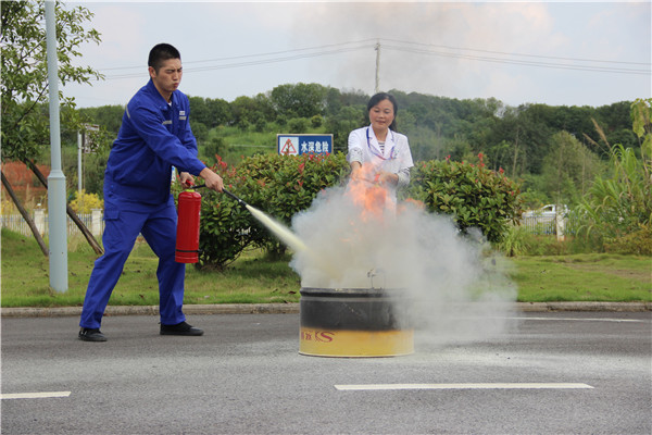 圖:消防演練現場 本次的消防演練邀請興安保安相關負責人,在演練前就火災現場的應急處置方案、滅火器基本操作方法及注意事項、火場逃生和自救知識等方面給現場觀摩員工進行講解。演練現場熊熊燃燒的火勢撲面而來,應急搶修小組立即啟動應急救援預案,小組成員各司其職,前線搶修人員扛起干粉滅火器快速跑到離發火地1米的距離進行掃射式滅火,在短短十余秒內迅速將火撲滅,成功完成此次消防應急演練活動。隨后,現場還組織了觀摩員工進行實操演練,進一步檢驗了員工的消防安全應急能力和實戰能力。