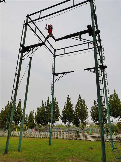 圖一:破冰活動(dòng) 第一個(gè)項(xiàng)目就是高難度挑戰(zhàn)——高空斷橋。設(shè)施高度12米,斷橋間隔1.2米。女學(xué)員們開(kāi)始很害怕,不敢嘗試。男學(xué)員們自告奮勇,率先挑戰(zhàn),還在空中擺出各種造型,贏得大家的陣陣掌聲。在男學(xué)員們不斷挑戰(zhàn)成功的喜悅氛圍感染下,女學(xué)員們也勇敢地嘗試。挑戰(zhàn)中途,有的女學(xué)員害怕不敢跨越斷橋,下面的男學(xué)員們一起高喊口號(hào),齊聲唱隊(duì)歌,鼓勵(lì)女學(xué)員勇敢前進(jìn)。在大家相互鼓勵(lì)下,最后所有人員全部順利挑戰(zhàn)成功!