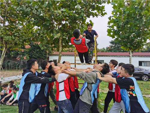圖四:團(tuán)隊(duì)活動(dòng) 最后一項(xiàng)活動(dòng)是信任背摔。經(jīng)過(guò)一天的訓(xùn)練合作,大家默契十足,對(duì)自己的隊(duì)友也是非常信任。每一位學(xué)員都圓滿完成了任務(wù)。