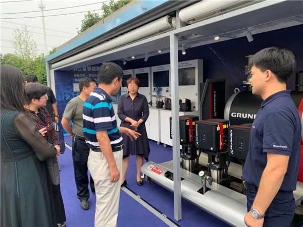 圖1:大篷車布場 設(shè)備銷售部是我公司經(jīng)營對(duì)外業(yè)務(wù)的部門,主要負(fù)責(zé)蘇北地區(qū)格蘭富供水設(shè)備的銷售以及標(biāo)準(zhǔn)化泵房的量身定制。經(jīng)過整個(gè)團(tuán)隊(duì)的不懈努力,目前,在宿遷周邊地區(qū)都陸續(xù)有了以格蘭富成套設(shè)備為核心的標(biāo)準(zhǔn)化泵房形象工程,得到了客戶們的認(rèn)可和好評(píng)。 公司以領(lǐng)先的技術(shù)水平,從前期勘測、設(shè)計(jì)、設(shè)備選型,到中期泵房裝修、管路安裝以及后期完整的售后服務(wù)體系,為我們的客戶提供完整的方案和技術(shù)支持,讓客戶們省心、放心。 這次大篷車路演展示活動(dòng)大大增進(jìn)了我們與客戶的合作關(guān)系,促進(jìn)了水司單位之間的兄弟情誼。一方面,我們通過詳細(xì)講解讓客戶詳細(xì)深入地了解格蘭富產(chǎn)品的核心優(yōu)勢;另一方面,帶著客戶在大篷車?yán)锪憔嚯x接觸設(shè)備,你問我答地解決了客戶在供水領(lǐng)域長久以來的疑惑和擔(dān)憂,真心實(shí)意地站在客戶的立場為客戶排憂解難,真正做到了讓客戶信服和認(rèn)可。