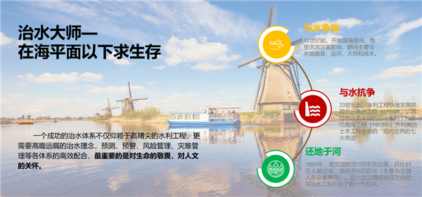 備注:荷蘭治水發(fā)展史 還地于河計劃旨在將已被農(nóng)田、聚落占領(lǐng)的洪泛平原還給河流,以期洪泛平原可正常發(fā)揮其滯洪、蓄洪功能。主要包含的工程內(nèi)容為:降低河灘、加深河槽、支流分水、拆除河障、降堤退堤、洪泛區(qū)生態(tài)多維復育等。奈梅亨退堤工程是荷蘭最為典型的案例之一。