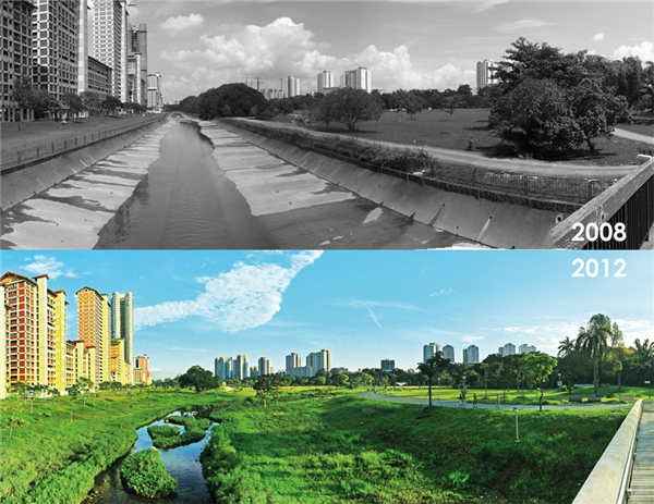 備注:國家級野生保護動物“黑水雞”,圖片來源于網(wǎng)絡(luò) 利水篇 人類社會的發(fā)展歷程中無不充斥著人與自然的辯證關(guān)系。理水治水最終離不開以人為本,生態(tài)服務(wù)的宗旨與原則。新加坡作為一個典型的水資源匱乏的國家,在水的利用與保護上,做出了巨大的努力, ABC水計劃(Active, Beautiful, Clean)就是在這樣的背景下誕生的。 該計劃旨在拉近人與水之間的關(guān)系,運用一個更好的雨水管理方式,盡可能把每滴雨水留住,將下水道、溝渠、水庫改造成為富有活力的、美麗的、清潔的小溪、河流與湖泊,與鄰近的土地成為一體,以創(chuàng)造出充滿活力的社區(qū)公共空間。 其主要采用自然凈化過程,包括沉淀、滲透與植物吸收等作用,主要工程元素包含沉淀池、植草溝、人工濕地、生物滯留溝、生物滯留池及生態(tài)工法駁岸等等,同時也包含多種綠色建筑、公共教育空間等配套措施。