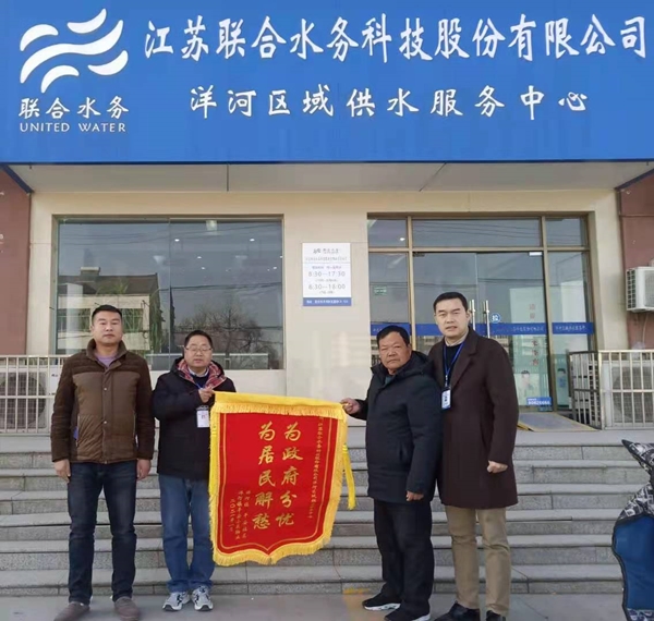 近日,平安社區領導以及物業公司負責人將一面印有“為政府分憂,為居民解憂”的錦旗送至宿遷供水公司洋河區域供水服務中心,對洋河服務中心在寒潮期間的付出表示由衷地感謝,公司區域供水總監楊坤、中心主任宋衛偉代表洋河中心接受錦旗。