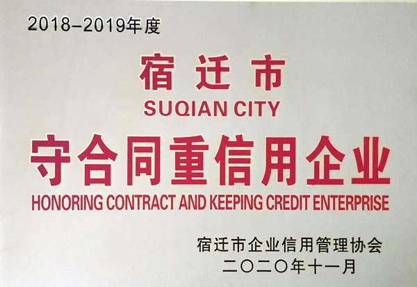 2020年歲末,宿遷市企業(yè)信用管理協(xié)會(huì)公示了《2018-2019年度宿遷市市級(jí)“守合同重信用”企業(yè)公示名單》,宿遷聯(lián)合市政工程有限公司榮膺在列,經(jīng)過(guò)公示,最終2021年1月下旬,證書和牌匾正式下發(fā)到獲獎(jiǎng)企業(yè)。能獲此榮譽(yù)稱號(hào)是對(duì)宿遷聯(lián)合市政多來(lái)以來(lái)堅(jiān)持守合同重信用工作的認(rèn)可與肯定。