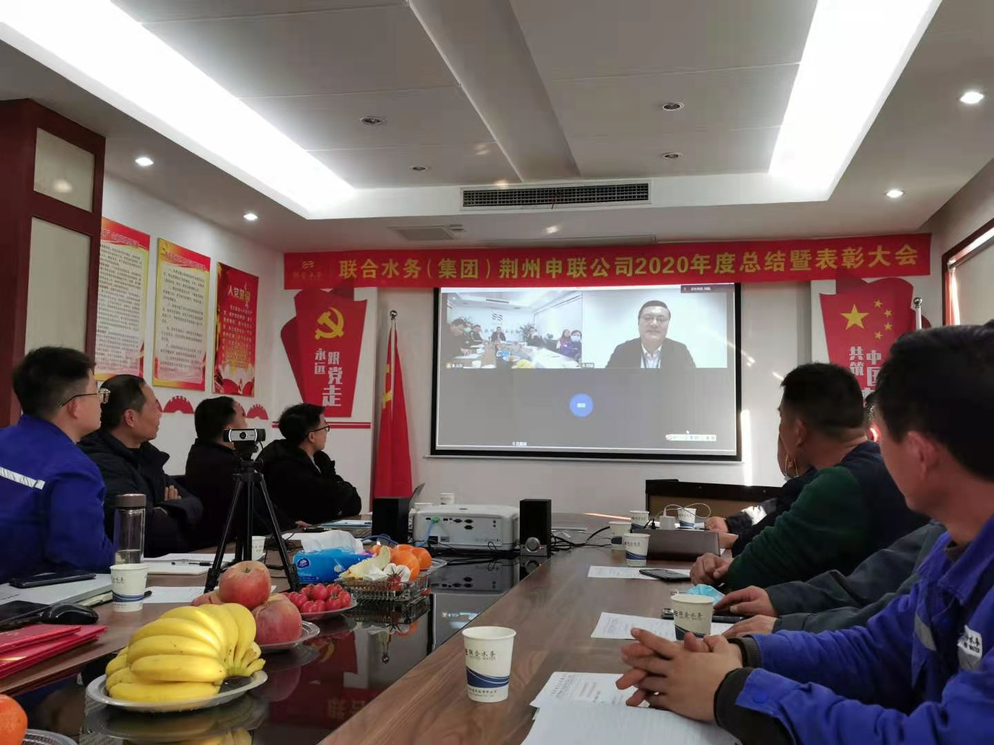 “玉鼠載譽辭舊歲,金牛報喜迎新春”。2月5日,荊州申聯公司召開以“共克時艱、開創未來”為主題的2020年工作總結暨表彰大會,會議全面回顧2020年主要工作,分析不足,總結經驗,安排部署2021年目標任務。聯合水務集團董事兼高級副總裁劉猛以及荊州申聯公司主管級以上人員、先進員工、員工代表共計26人參加了會議,會議由人事行政副總經理劉斌主持。為加強疫情防控工作,會議采取“現場+視頻直播”的方式進行。