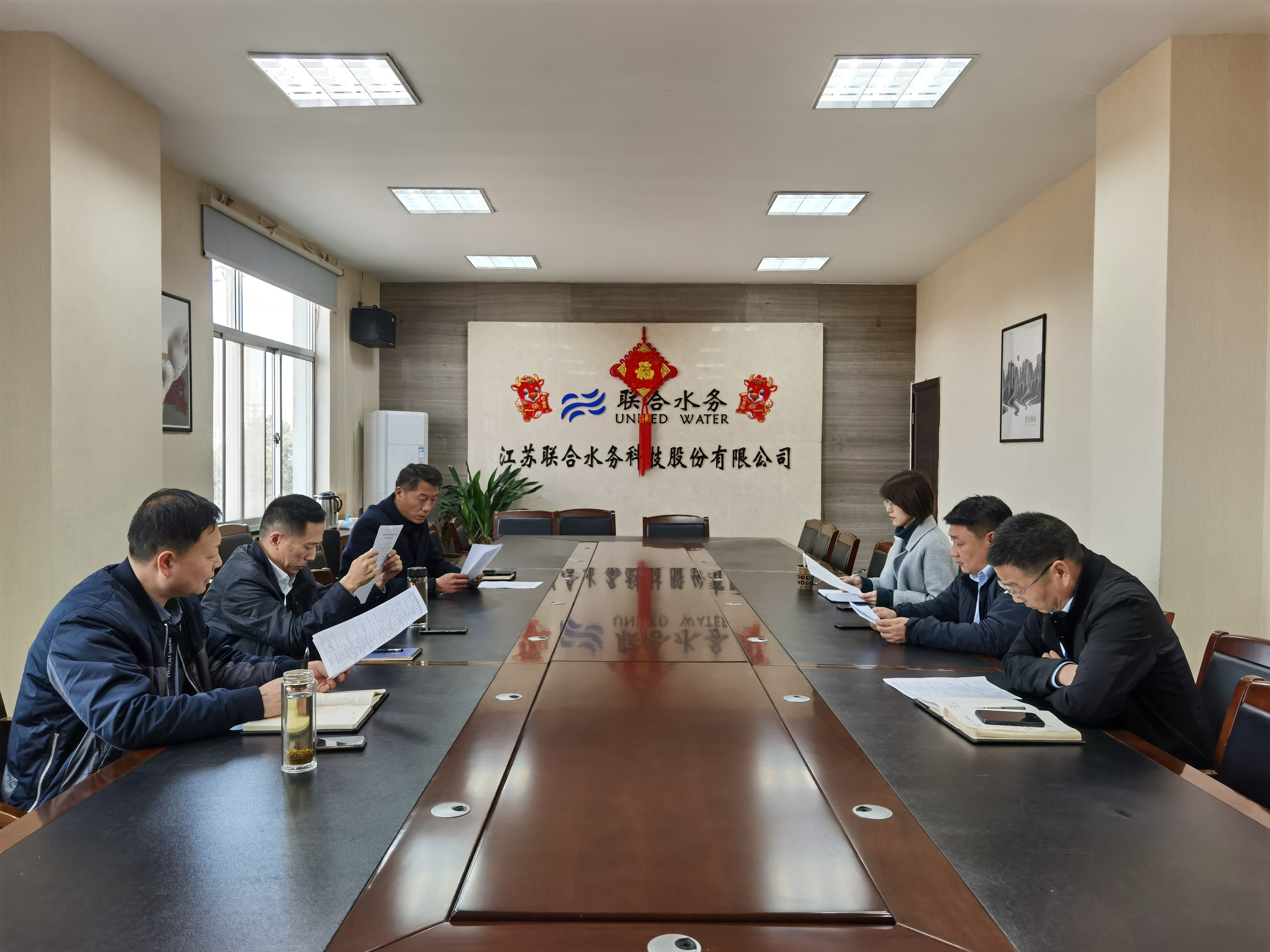 陽春三月,萬物向陽,生機勃勃。時值“兩會”勝利閉幕之際,3月17日下午,中共江蘇聯合水務科技股份有限公司委員會召開專題會議,學習“兩會”精神,落實“兩會”目標,同時進行近期工作部署討論。會議由公司黨委組織委員杜愛軍主持,黨委書記曾真、副書記陳少軍及黨委成員參加了會議。