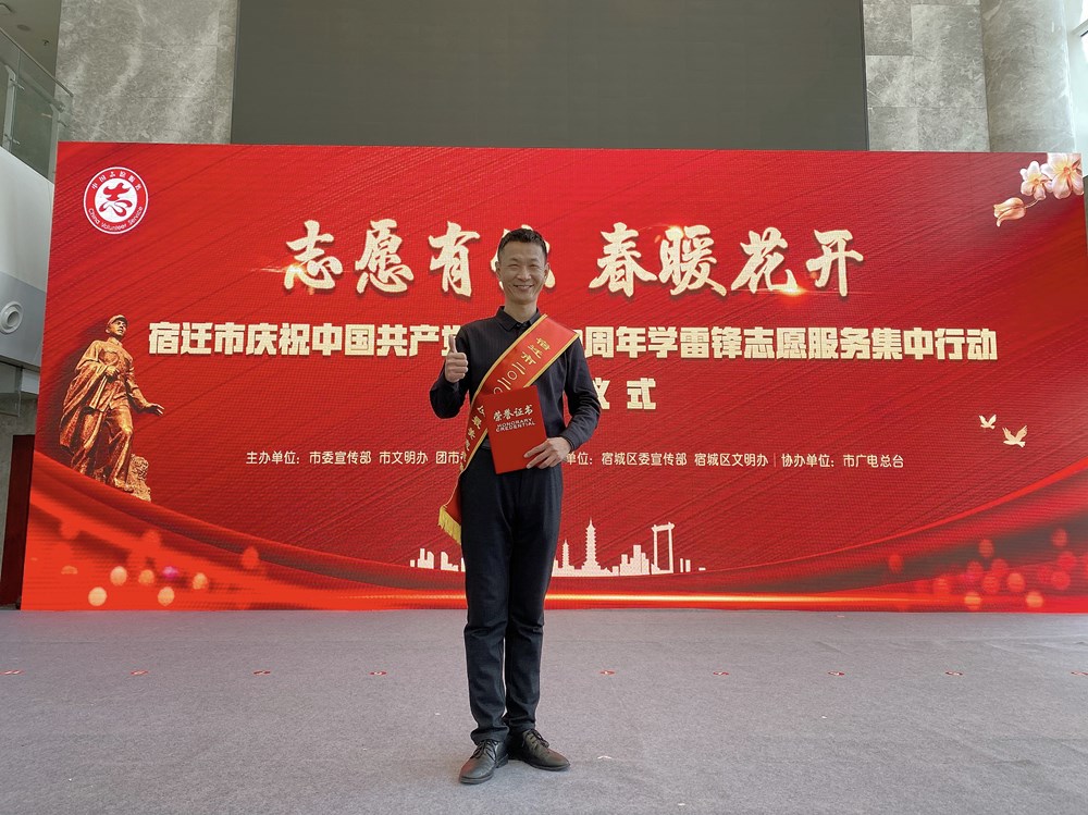 2018年,他加入了宿遷市芳草志愿者協會,成為了一名有組織的志愿團隊中的一員,同年他組建芳草志愿者文藝隊并擔任隊長一職,負責節目的主持、編排和表演,年底由于工作突出被選為副會長,連續3年獲得“優秀志愿者”嘉獎,至今一直活躍在各個敬老院里為老人們義務演出。同時他還經常帶領隊員進社區進校園進企業義務宣傳黨的方針政策,配合政府進行反欺凌、反暴力、講國學、說孝道等活動,促進社會和諧穩定,取得了良好的社會效應。