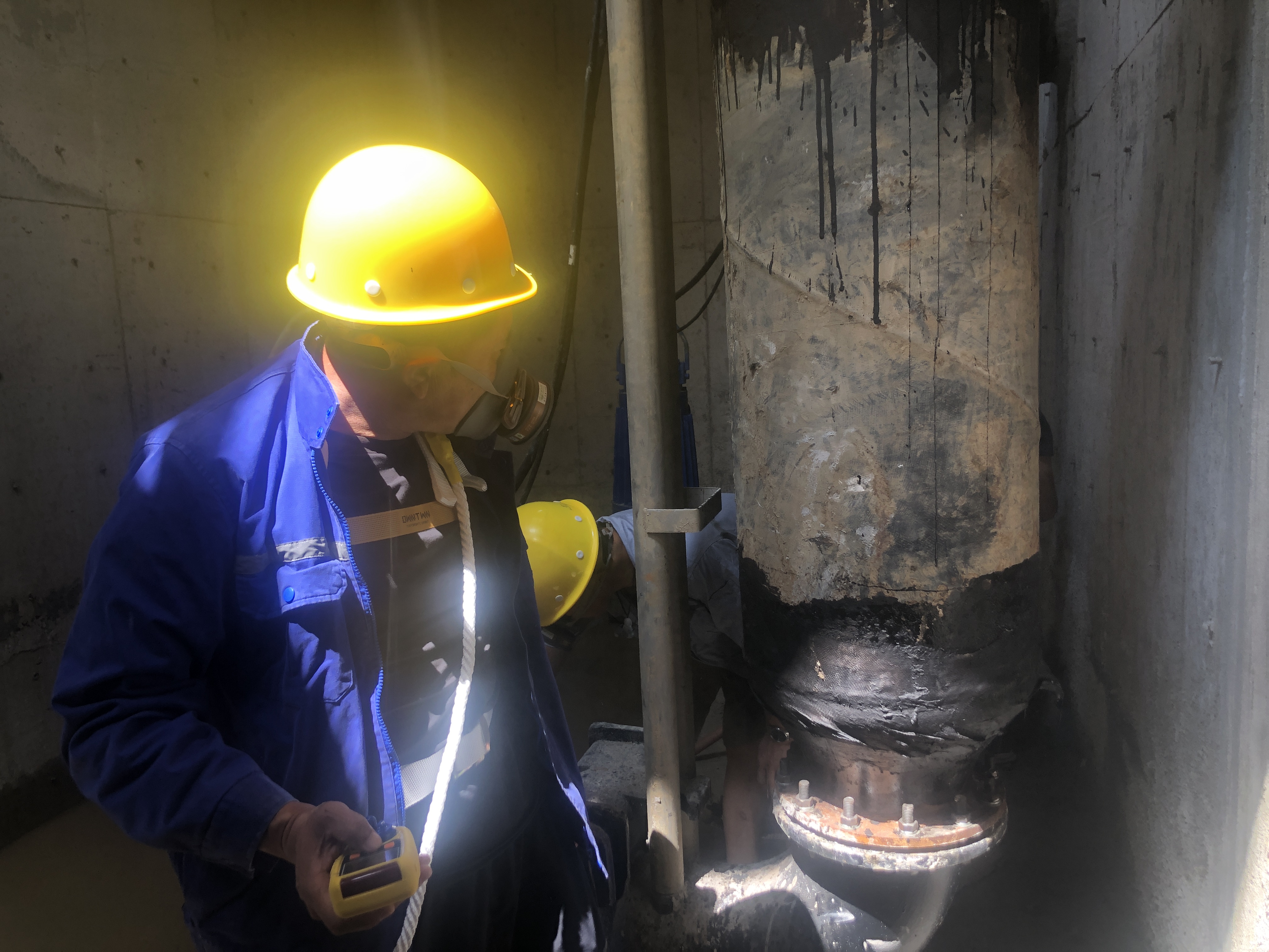 會后組織安全員及機修部門模擬泵房水泵故障搶修演練。運行人員在發(fā)現(xiàn)泵房水泵故障后立即上報分管領導,然后生產(chǎn)部門組織搶修小組,到達設備故障現(xiàn)場后首先對密閉空間進行通風,再進行密閉空間氣體監(jiān)測,確認空間環(huán)境許可后,機修人員穿戴安全防護措施,在地面工作人員的監(jiān)護下,下井進行維修作業(yè),結(jié)束演練。