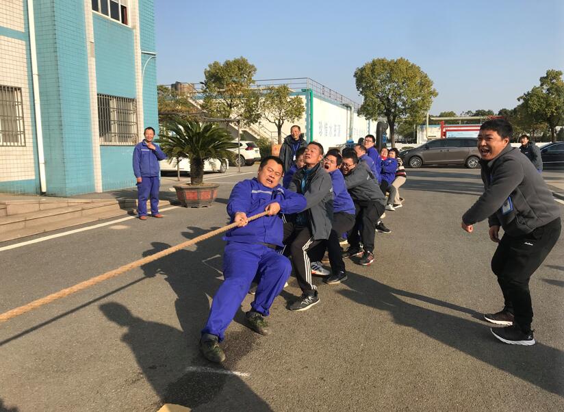 圖:合影留念 本次員工趣味活動共設5個項目,其中傳統項目拔河以及兩人三足跑、企鵝漫步、螃蟹背西瓜三個趣味項目在公司辦公大樓前舉行,壓軸項目羽毛球比賽在奧體中心羽毛球館舉行。 下午2點,陽光明媚、微風拂面,隨著一聲響亮的哨響,員工趣味活動正式拉開帷幕。第一個項目是比拼力量和團隊協作能力的傳統項目拔河團體賽:根據男、女員工比例平均分配為葉向上隊、劉友清隊,三局兩勝。比賽一開始就進入白熱化階段,賽場上吶喊聲、助威聲此起彼伏,盡管劉友清隊已使出渾身解數,但葉向上隊在徐正舟、陶楊等猛男的力量加持下以2:1的比分獲勝。