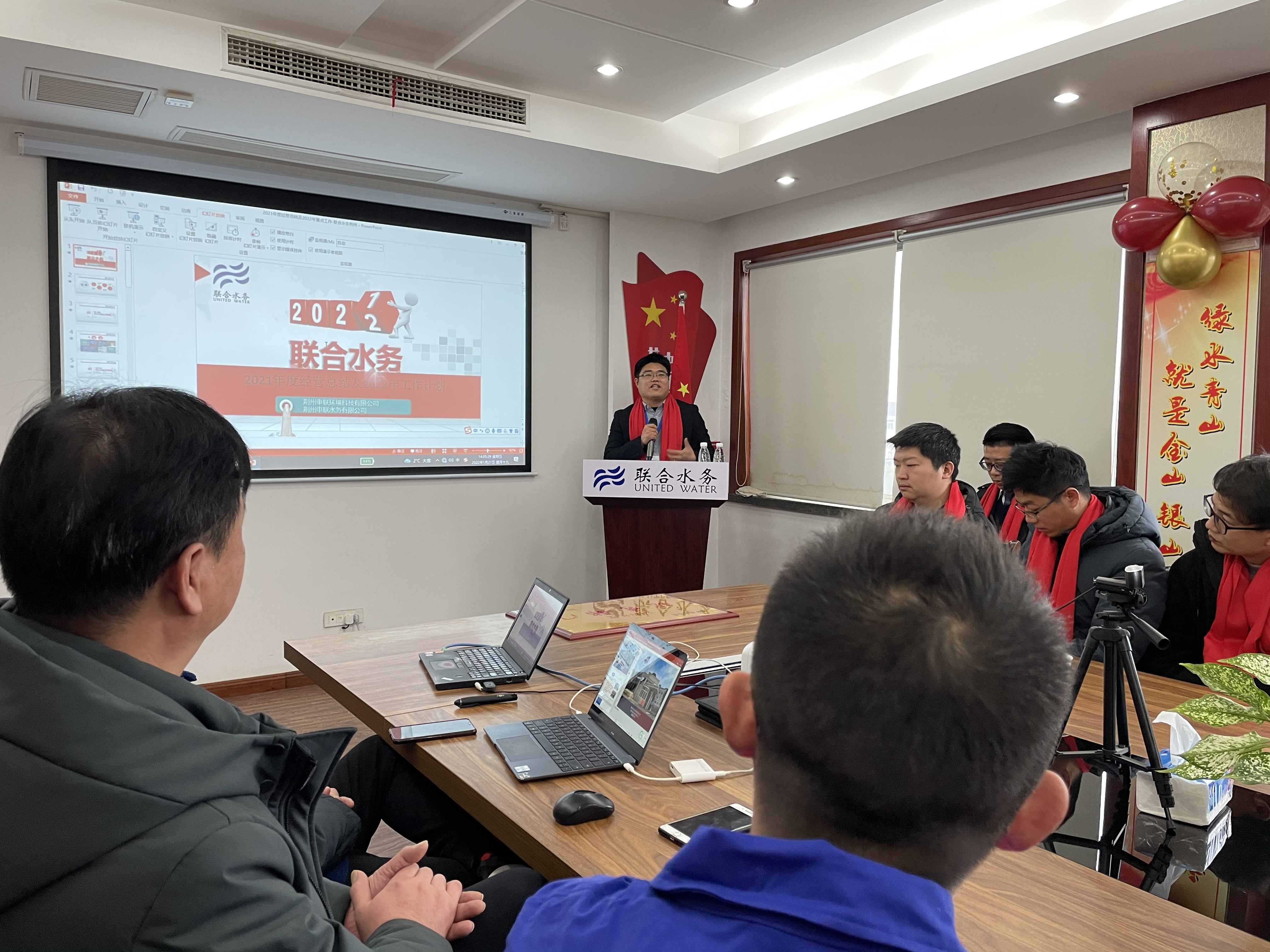 為全面回顧2021年主要工作,分析不足、總結經驗,提升短板、增強弱項,把舵定調2022年工作,以及表彰先進部門和員工。1月21日,荊州申聯公司召開以“負新任,再跨越”為主題的2021年工作總結暨表彰大會。江蘇聯合水務科技股份有限公司常務副總裁劉猛以及荊州申聯公司主管級以上人員、先進員工、員工代表共計30余人參加了會議,會議由總經理助理吳帆主持。