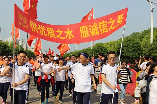 上午9時,陽光明媚,微風和煦,起跑點人潮洶涌,氣氛熱烈,公司旗手高舉“供優質之水,服誠信之務”和“咸寧聯合水務有限公司”的旗幟組成方陣整裝待發。隨著主持人一聲令下,各參賽者朝著終點方向次第前行,開始長達5公里的快樂健身賽跑。